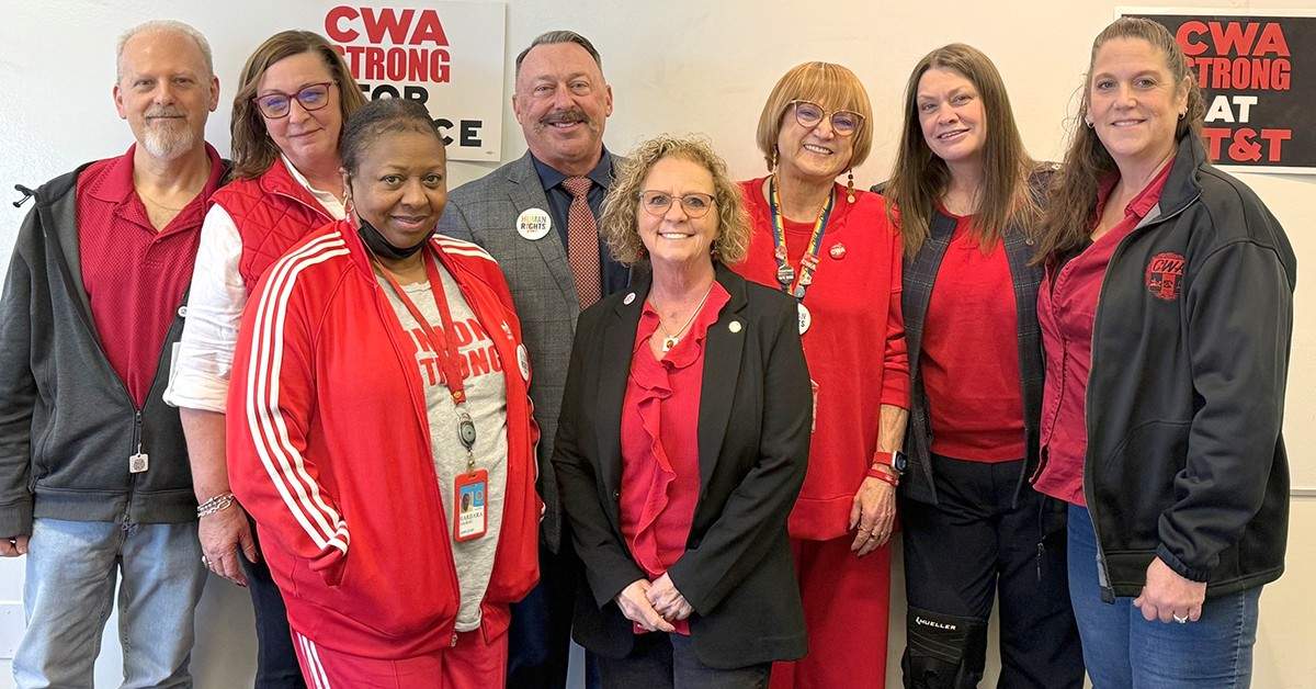 Members showed incredible solidarity and support for their bargaining team through mobilization actions. The team included CWA T&T Assistant to the Vice President and Bargaining Chair Brian Sawyer, CWA T&T Staff Representative Kara Hutchason, CWA Local 4252 President LaNell Piercy, CWA Local 13500 President Cindy Neumeyer, CWA Local 7250 Member Shari Wojtowicz, CWA Local 3250 President Barbara Tolbert, and CWA Local 7750 President Chris Roth.